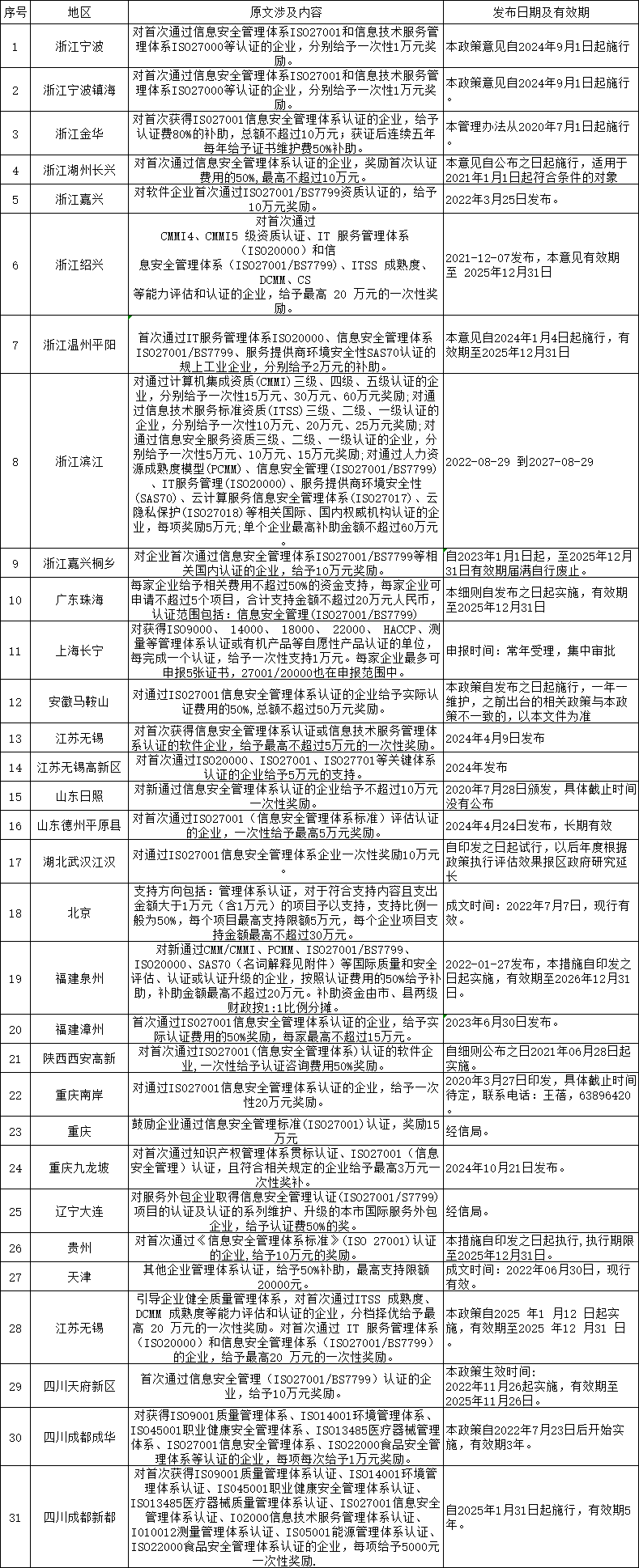 2025年ISO雙信息認證哪些地區可以申請補貼呢?山西領拓認證匯總了各大地區的補貼情況,供大家參考,不要錯過這些補貼哦!