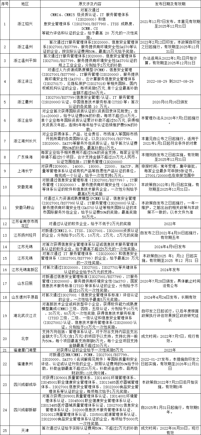 最高60萬!2025年最新雙信息認證(ISO27001、ISO20000)補貼匯總