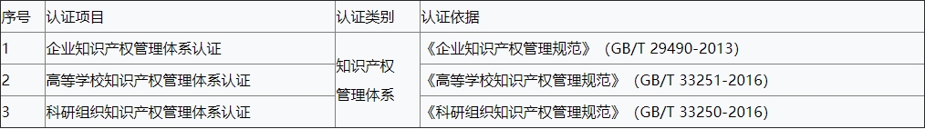 第三條 知識產權認證包括知識產權管理體系認證和知識產權服務認證。