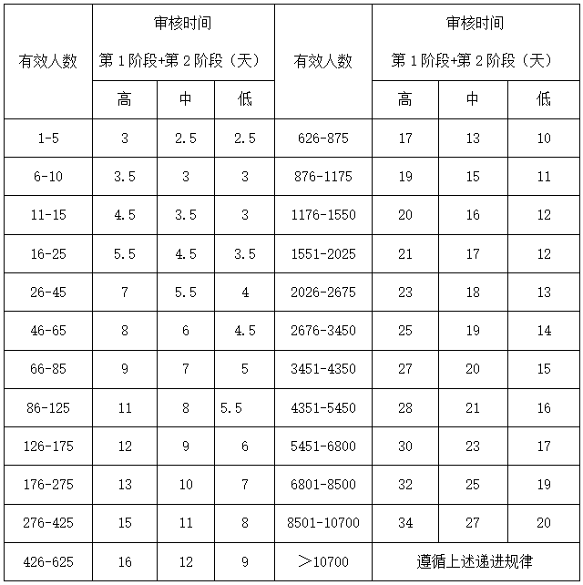注1:審核時(shí)間按高、中、低的環(huán)境因素復(fù)雜程度分別顯示。