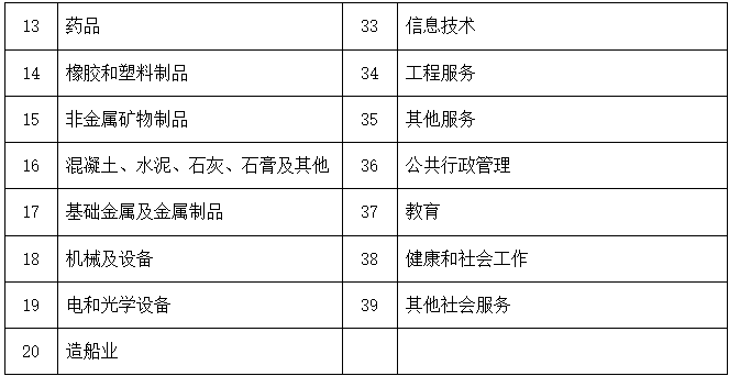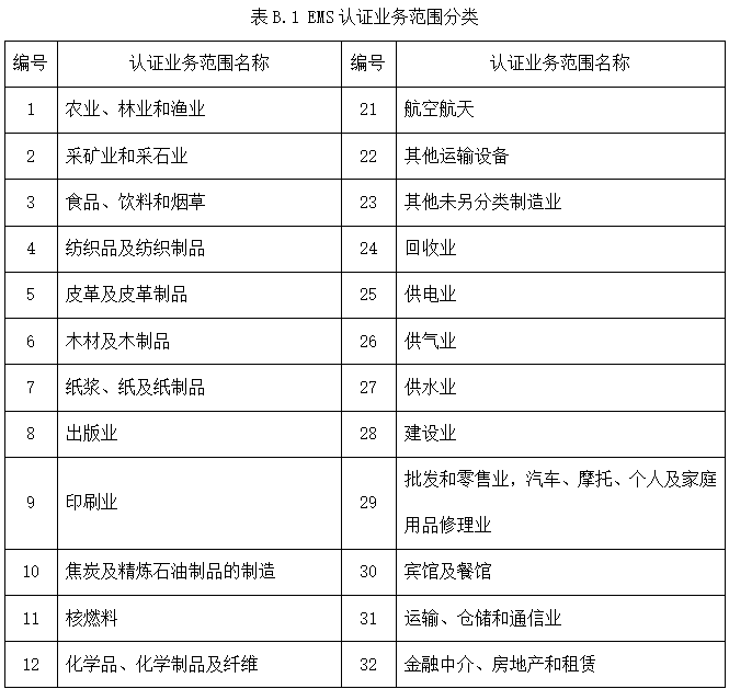 B.1 EMS認(rèn)證業(yè)務(wù)范圍共劃分為39大類,詳見表B.1。
