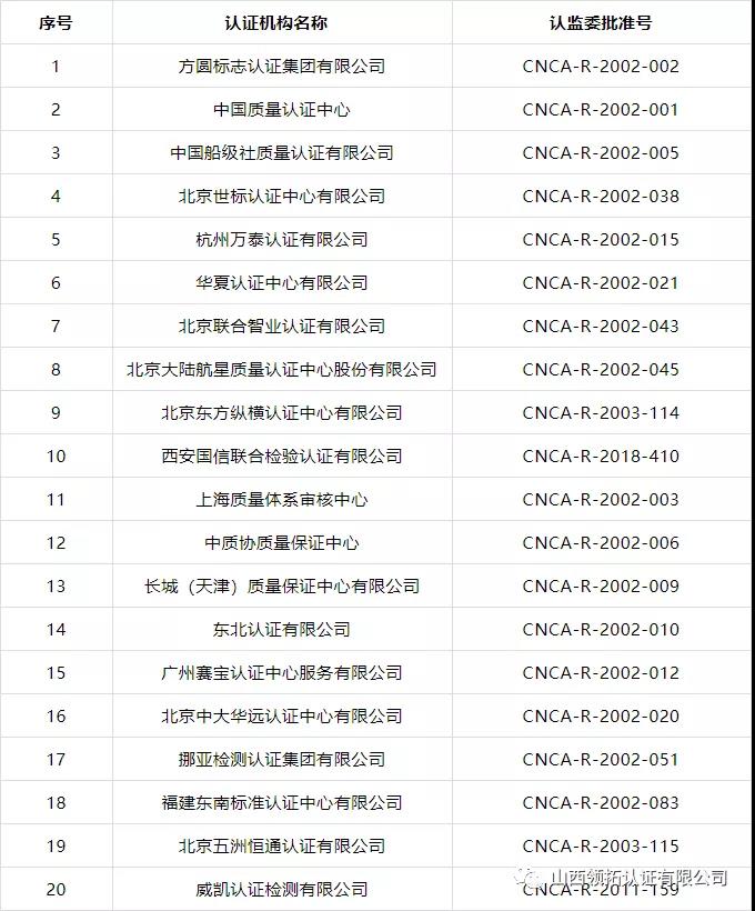“小微企業質量管理體系認證提升行動”工作突出的認證機構名單