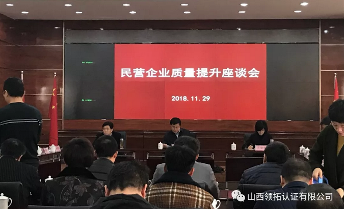 為貫徹落實習近平總書記“兩個毫不動搖”支持民營經濟發展的重大方針和《國務院關于加強質量認證體系建設促進全面質量管理的意見》精神,推廣質量管理先進標準和認證,幫扶民營企業質量提升,助推民營經濟發展,市場監管總局于11月29日在山西省太原市質監局召開由山西省市場監督管理局副巡視員喬寶貴支持的“民營企業質量提升座談會”。
